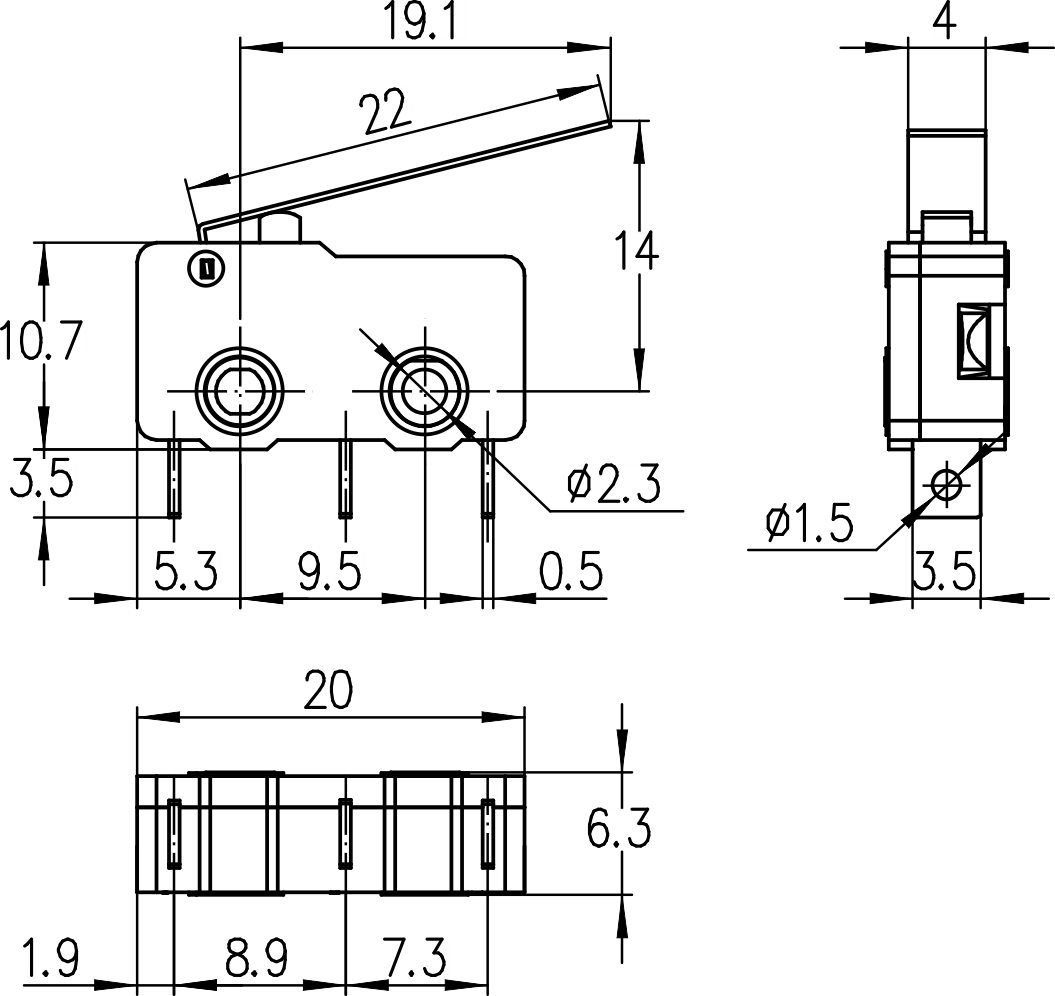→焊接端子 Soldering terminals 3.5×0.5mm