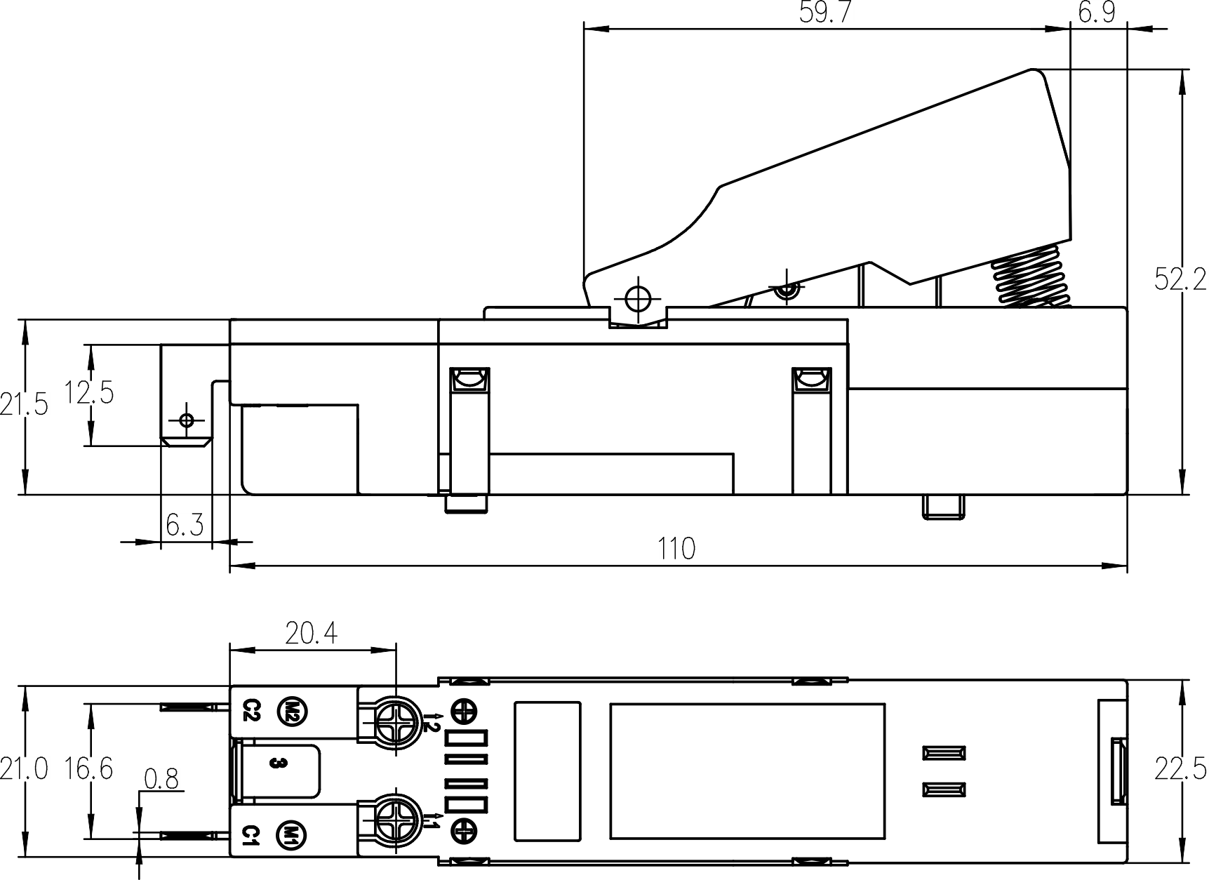 →插片端子 Plug-in terminal 6.3×0.8mm