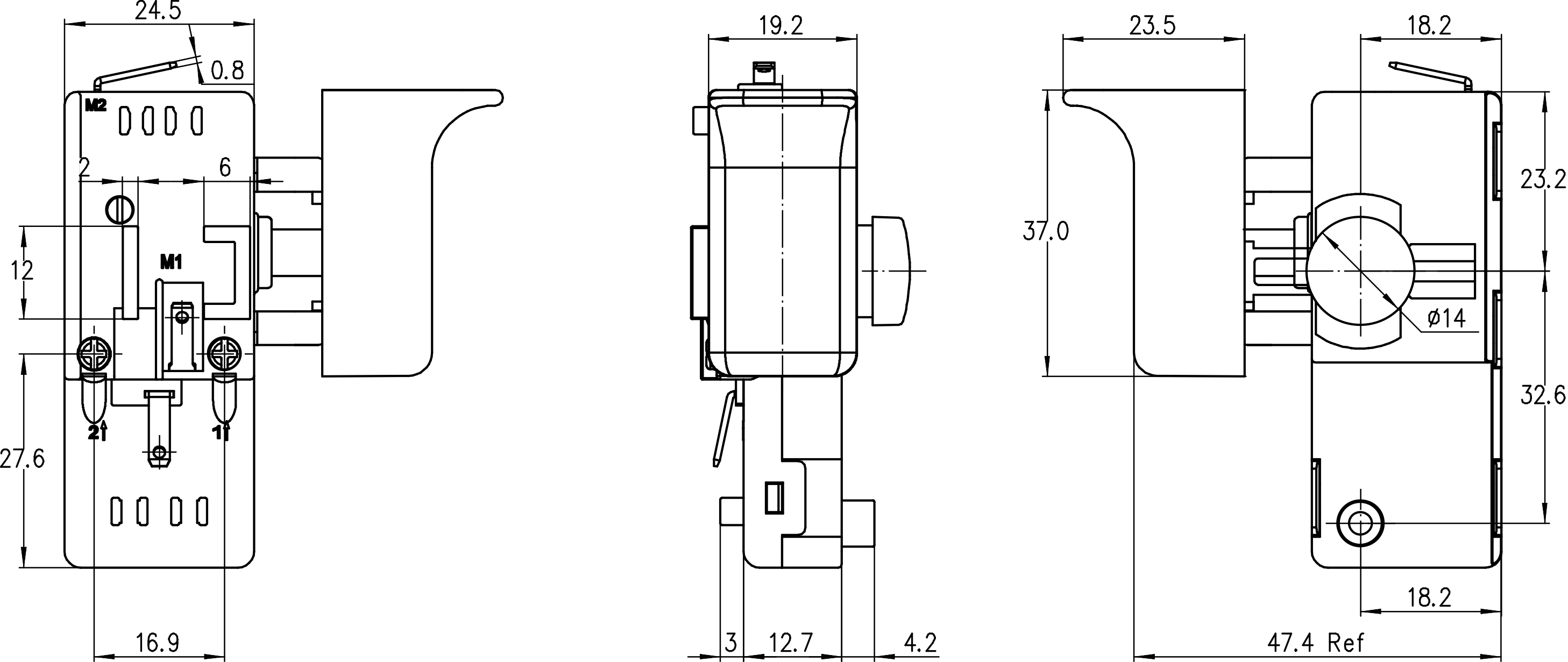 ◆JBF系列是一款專用型扳機(jī)電子調(diào)速開關(guān),集成防塵功能,應(yīng)用于各類手持式電動工具,如:電鉆、沖擊鉆、電錘、曲線鋸、往復(fù)鋸、馬刀鋸、攪拌器、拋光機(jī)和平板砂光機(jī)等。扳機(jī)、鎖鈕和撥桿可根據(jù)客戶要求進(jìn)行定制。