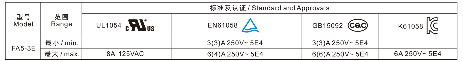 電氣參數(shù)和認(rèn)證 Electric Rating and Certification