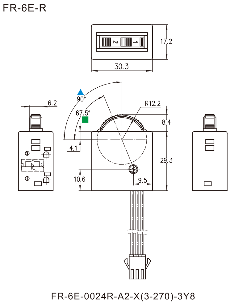 ■可選轉盤一檔印字與殼體上表面成90°