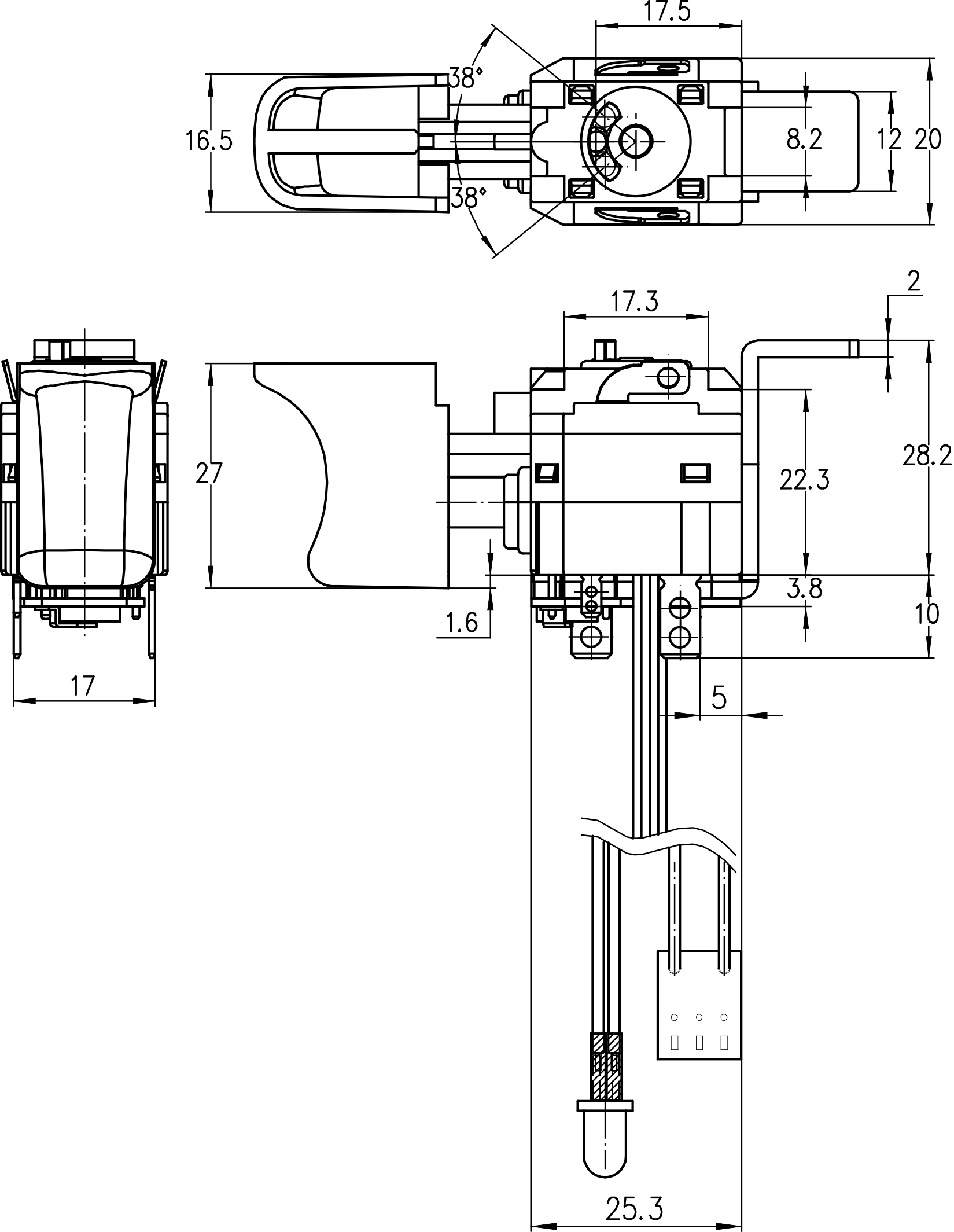 ◆本開(kāi)關(guān)結(jié)構(gòu)緊湊,可選帶以下功能或附件: