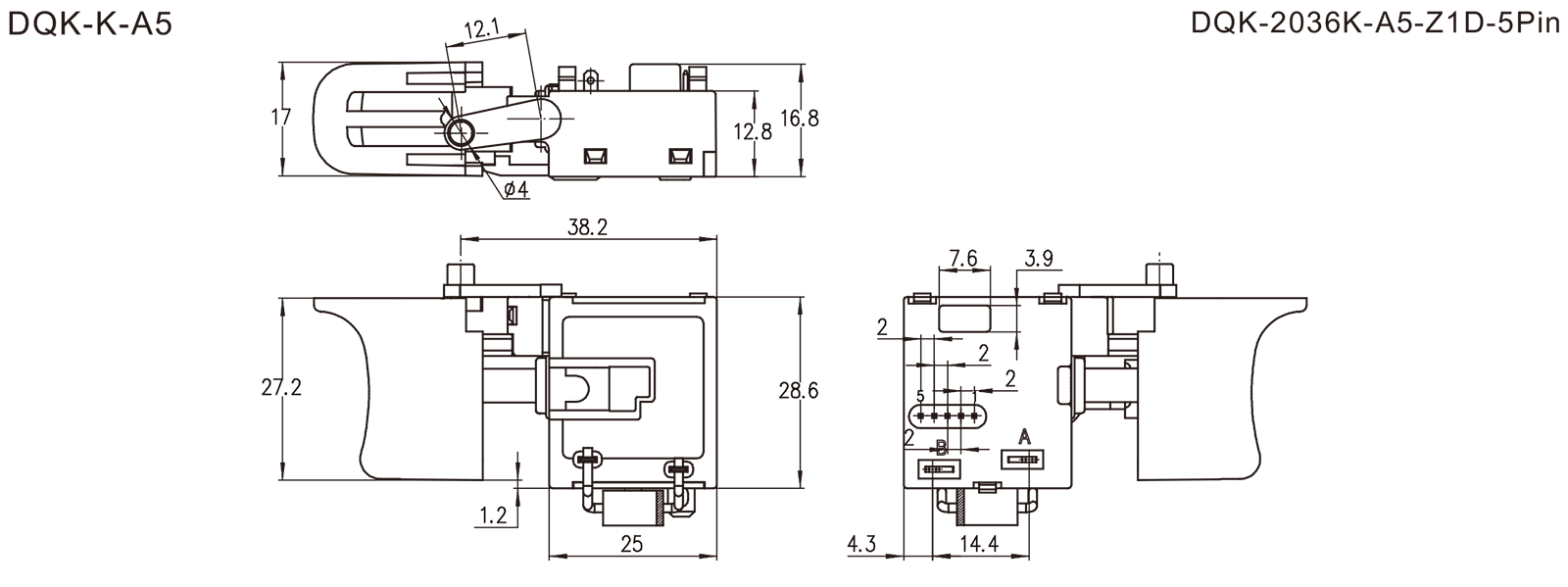 DQK系列是一款專用型的直流扳機開關,集成防塵功能,是特別為直流無刷充電式電動工具設計的,可適用于:無刷充電式電鉆、無刷充電式電錘、無刷充電式螺絲起子、無刷充電式沖擊扳手等。特殊設計的外形可以和線路板直接連接,而不需要外接導線。