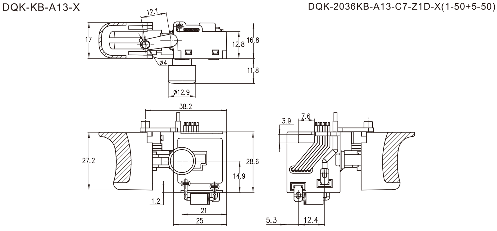 DQK系列是一款專用型的直流扳機開關,集成防塵功能,是特別為直流無刷充電式電動工具設計的,可適用于:無刷充電式電鉆、無刷充電式電錘、無刷充電式螺絲起子、無刷充電式沖擊扳手等。特殊設計的外形可以和線路板直接連接,而不需要外接導線。