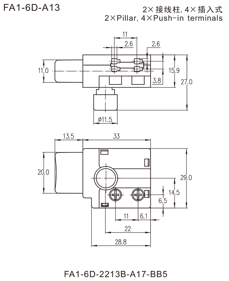 →2×接線柱端子Pillar terminalsφ=2.8mm