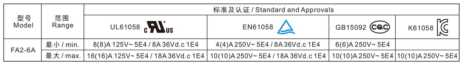電氣參數和認證 Electric Rating and Certification