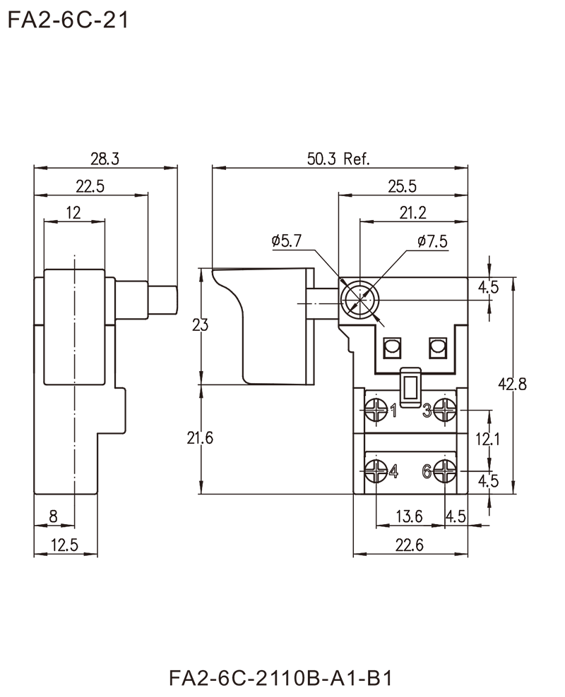 FA2-6C series are one general type trigger switch, integrated dustproof, commonly for used in power tools such as Cut-off Machines, Miter Saws, Marble Cutters, Circular Saws, Electric Hammers, Electric Routers, Belt Sanders, Electric Planers, etc.
