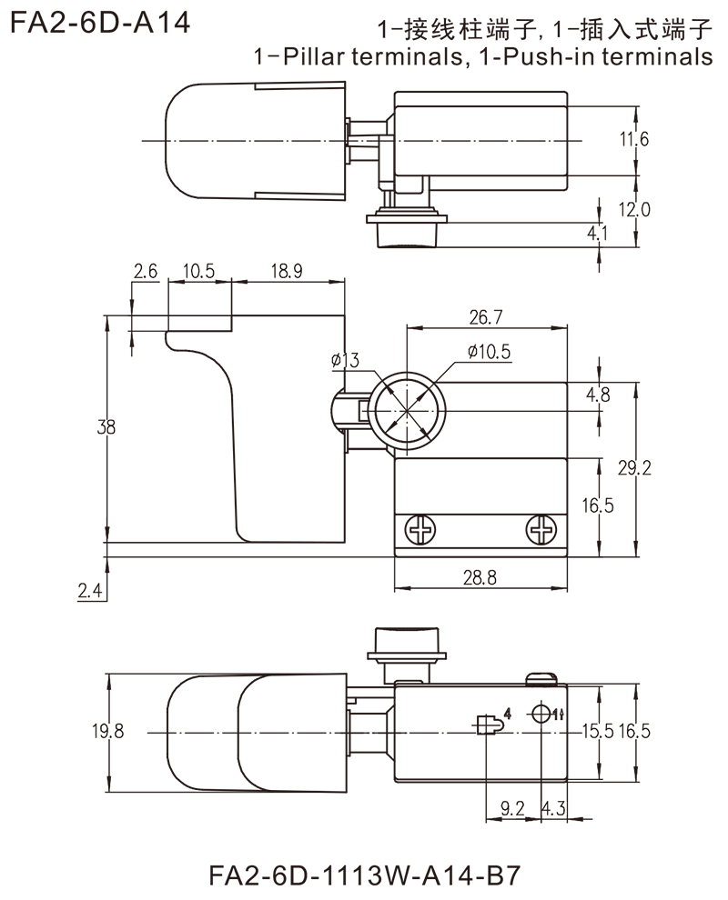 →插入式端子可插入沾錫導(dǎo)線,帶插片端子導(dǎo)線或銅包頭導(dǎo)線