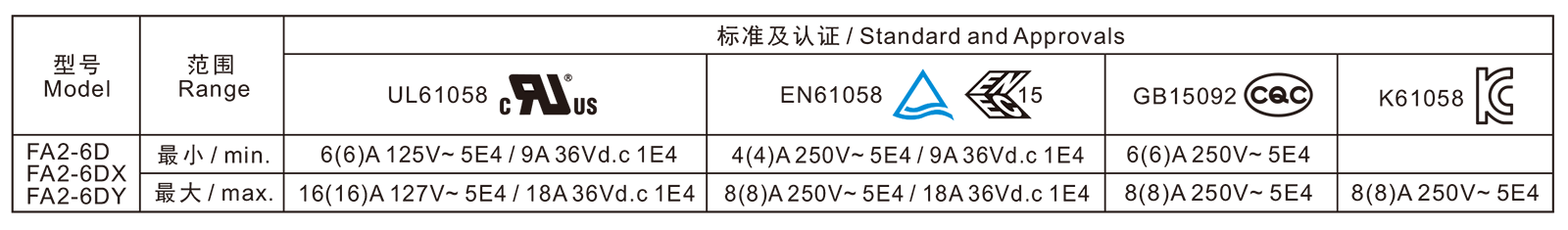 電氣參數和認證 Electric Rating and Certification