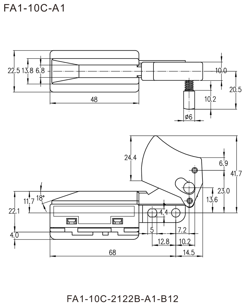 ◆FA1-10C, FA1-11 series are general type high rated trigger switches, integrated dustproof, with snap-action structure, for used in high rated bench-top, portable power-tools and gardening tools such as Cut-off Machines, Miter Saws, 150mm, 180mm and 230mm Large Angle Grinders, Polishers, Circular Saws, Rotary Hammers, Demolition Hammers, Electric Chain Saws, etc.