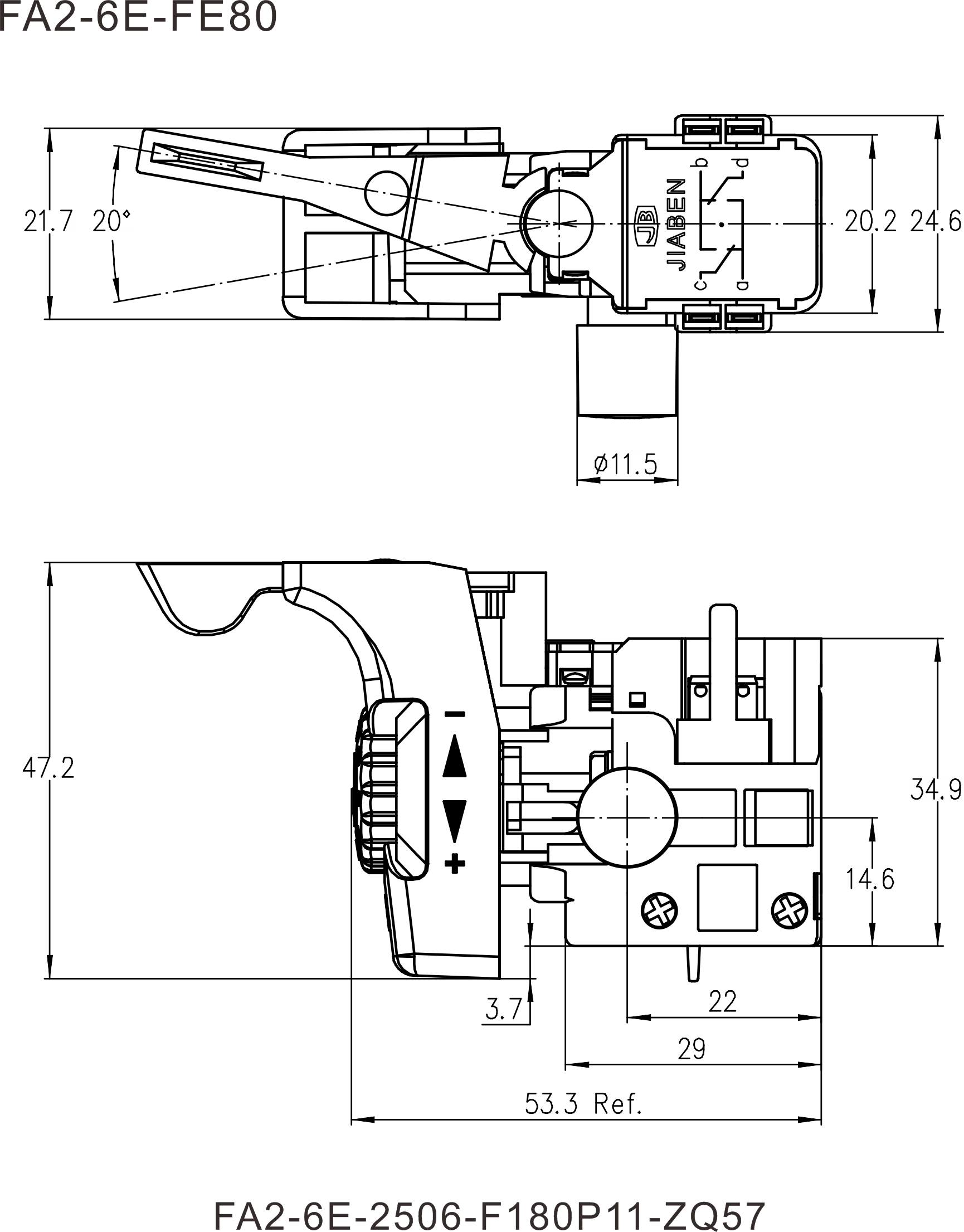 FA2-6E系列是一款通用型扳機電子調速開關,集成防塵功能,廣泛應用于各類手持式電動工具,如:電鉆、沖擊鉆、電錘、曲線鋸、往復鋸、攪拌器、拋光機和砂光機等。開關有多種換向盒可以選擇,扳機、鎖鈕和撥桿可根據客戶要求進行定制。