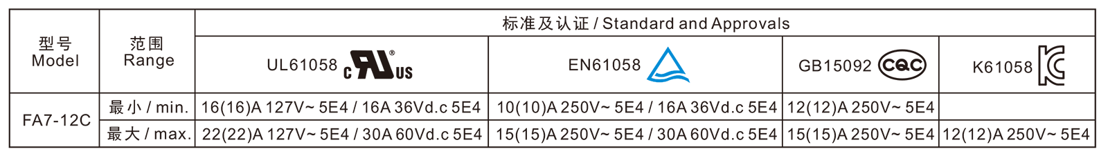 電氣參數(shù)和認(rèn)證 Electric Rating and Certification