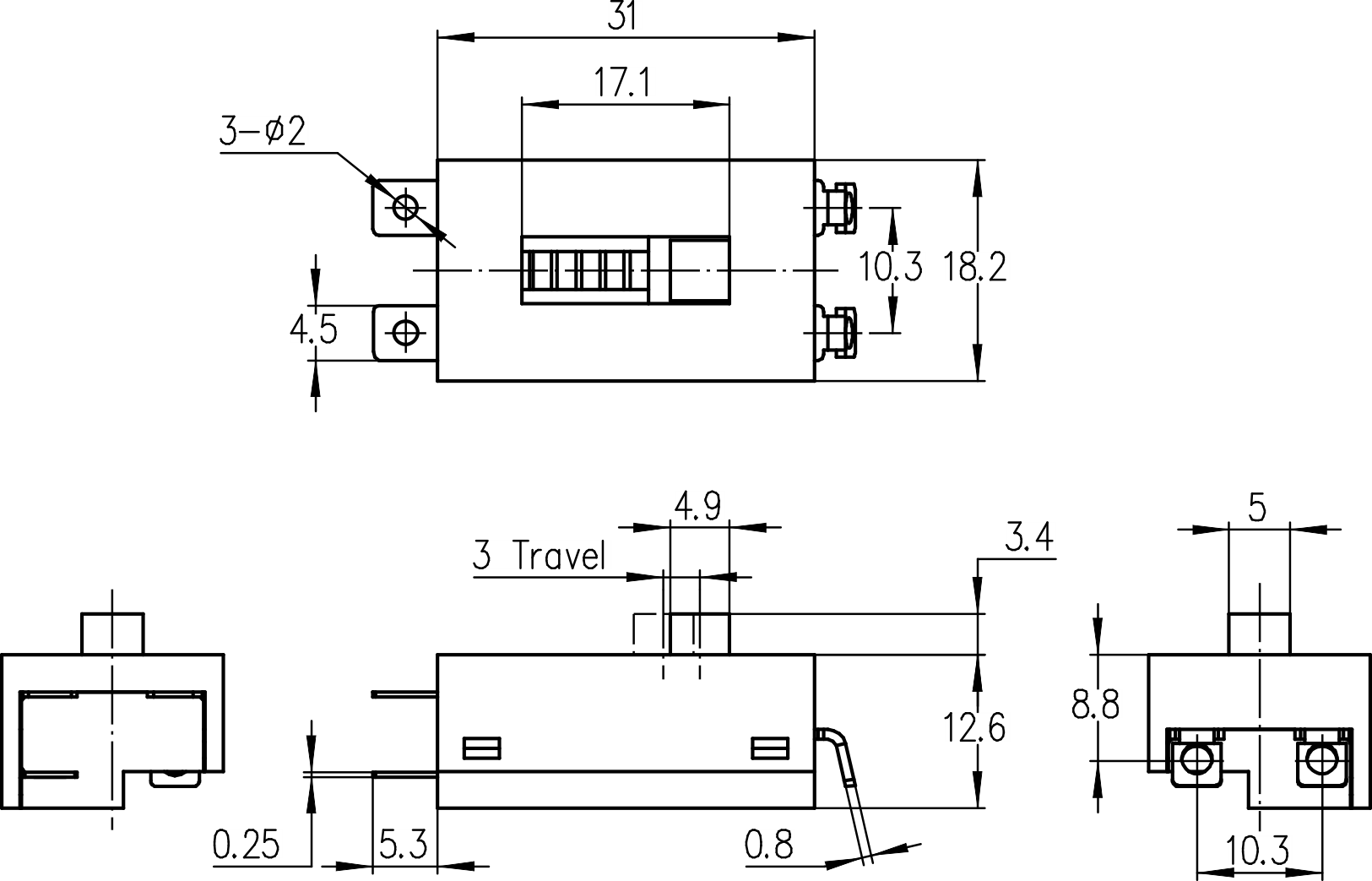 ◆FDK系列是一款通用型的推拉開關(guān),也叫滑動開關(guān),廣泛應(yīng)用于各類需要檔位控制的電動工具和小家電,如:熱風(fēng)槍、電吹風(fēng)等。