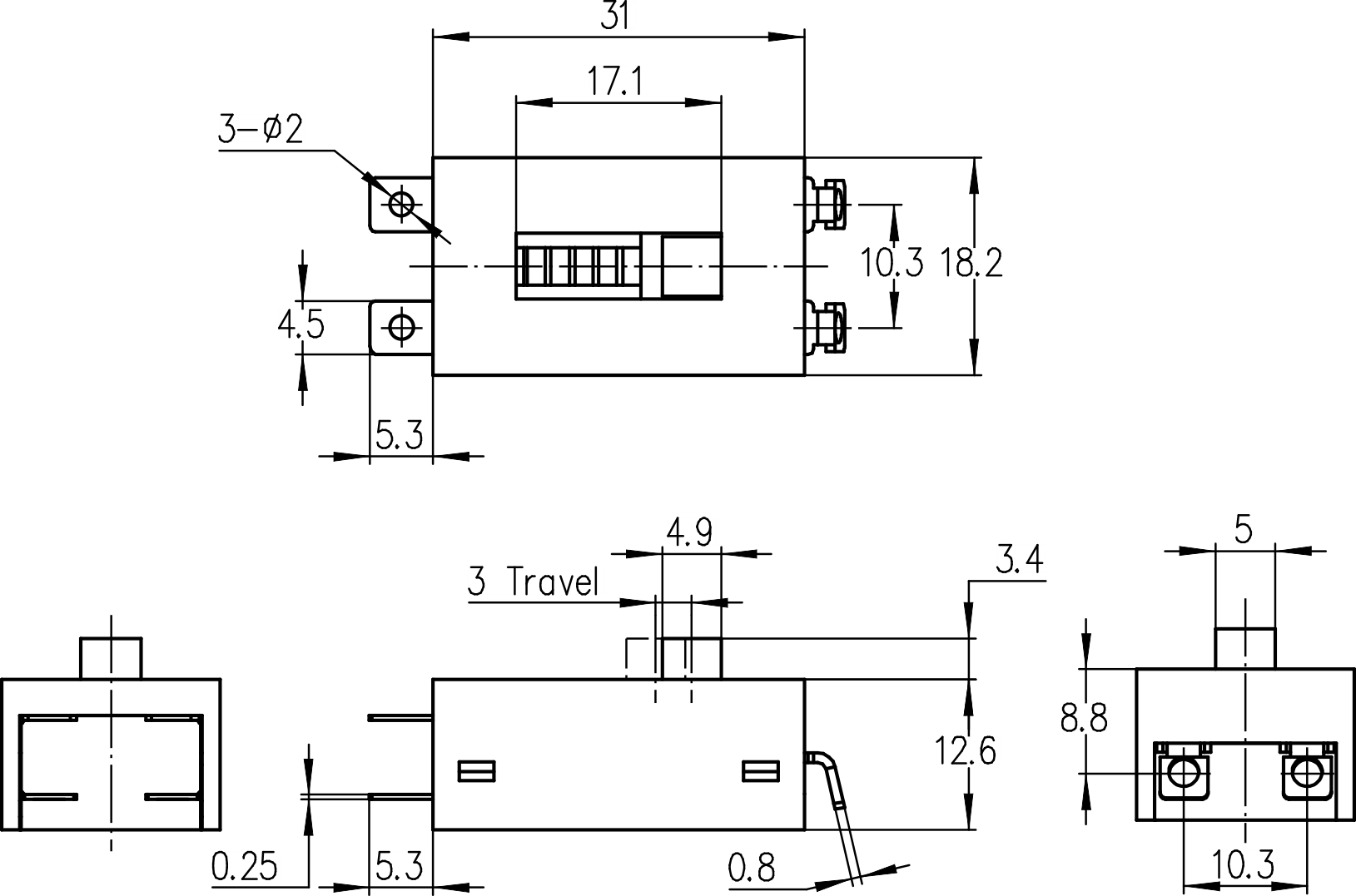 ◆FDK series are general type slide switches, commonly for used in power-tools and small home appliances such as Heat Guns, Hair Drvers, etc.