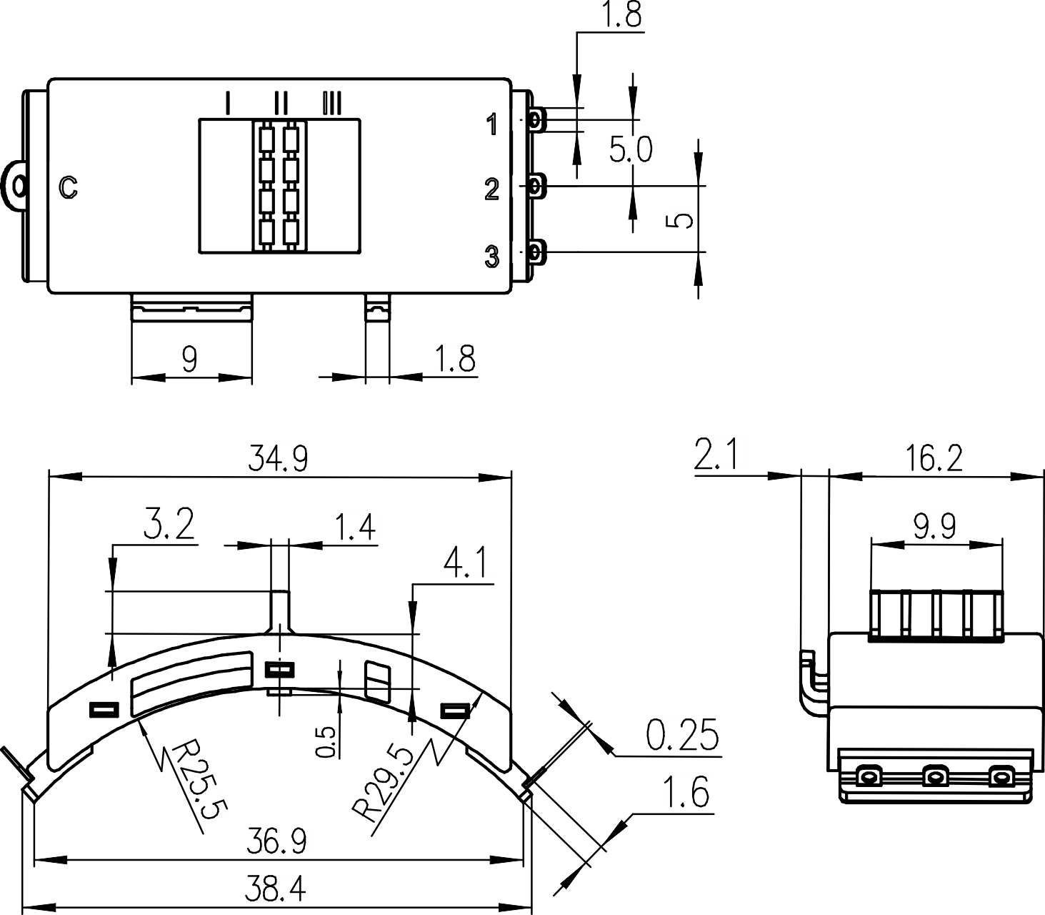 →焊接端子 Soldering terminals 4-φ=0.8mm