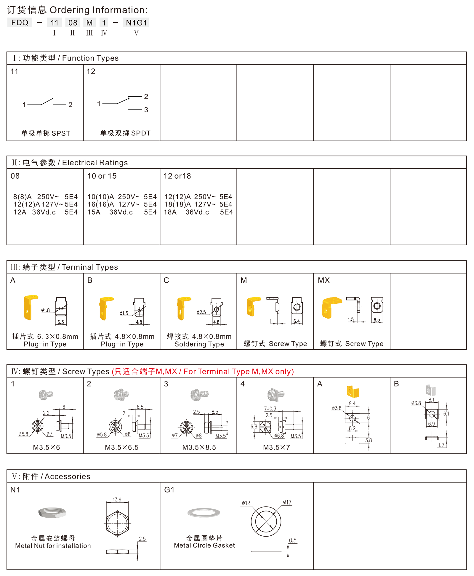 端子類型Terminals