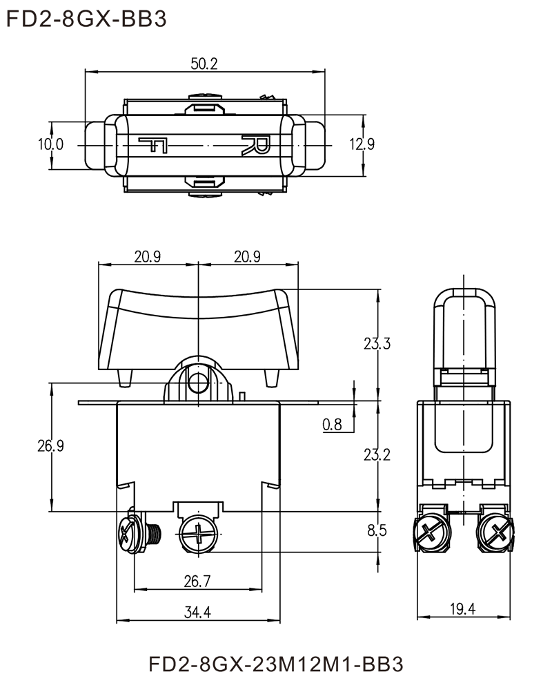 FD2-8GX系列是一款專用型的倒扳開關,也叫搖桿開關或撥動開關,應用于各類手持式電動工具,如:電動沖擊扳手、電動攪拌器、電動葫蘆等。