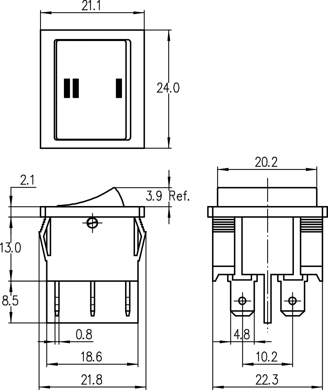 →插片端子 Plug-in terminals 4.8×0.8mm