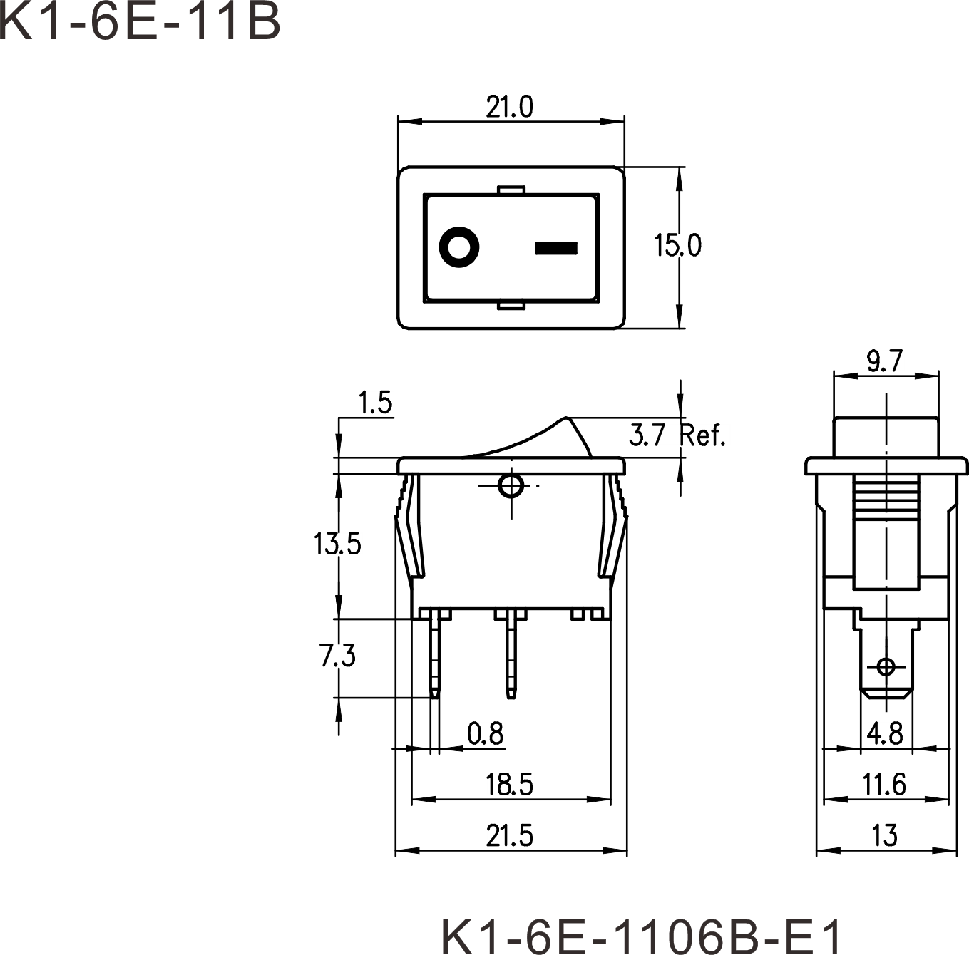 ◆K1-6E series are one standard type rocker switch, optional with Protection Cap for dustproof and waterproof, or with inner dustproof structure, commonly for use in portable power-tools such as Hand Sanders, Die Grinders, Electric Nailers, Laser Actuators, etc. Also for used in small Home appliances and office equipments, such as Reading Lamps, Electric Fans, Printers, Game Players, Computer Power-supplys, Power Sound Box, etc.