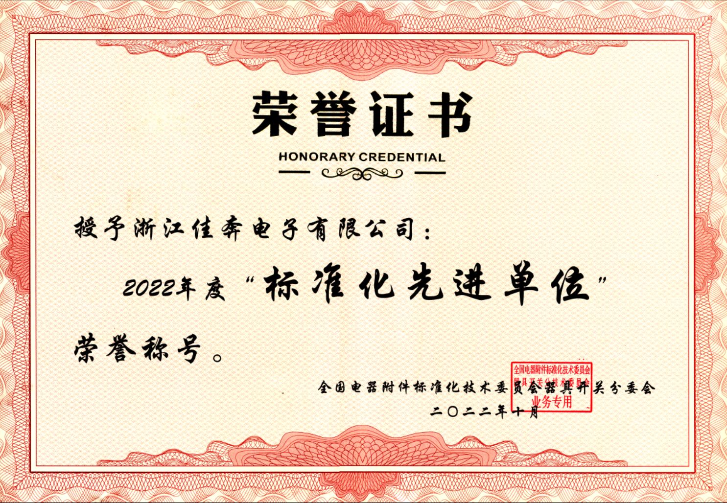 公司榮獲全國(guó)電器附件標(biāo)準(zhǔn)化技術(shù)委員會(huì)器具開關(guān)分技術(shù)委員會(huì)頒發(fā)的2022年度“標(biāo)準(zhǔn)化先進(jìn)單位”榮譽(yù)證書!