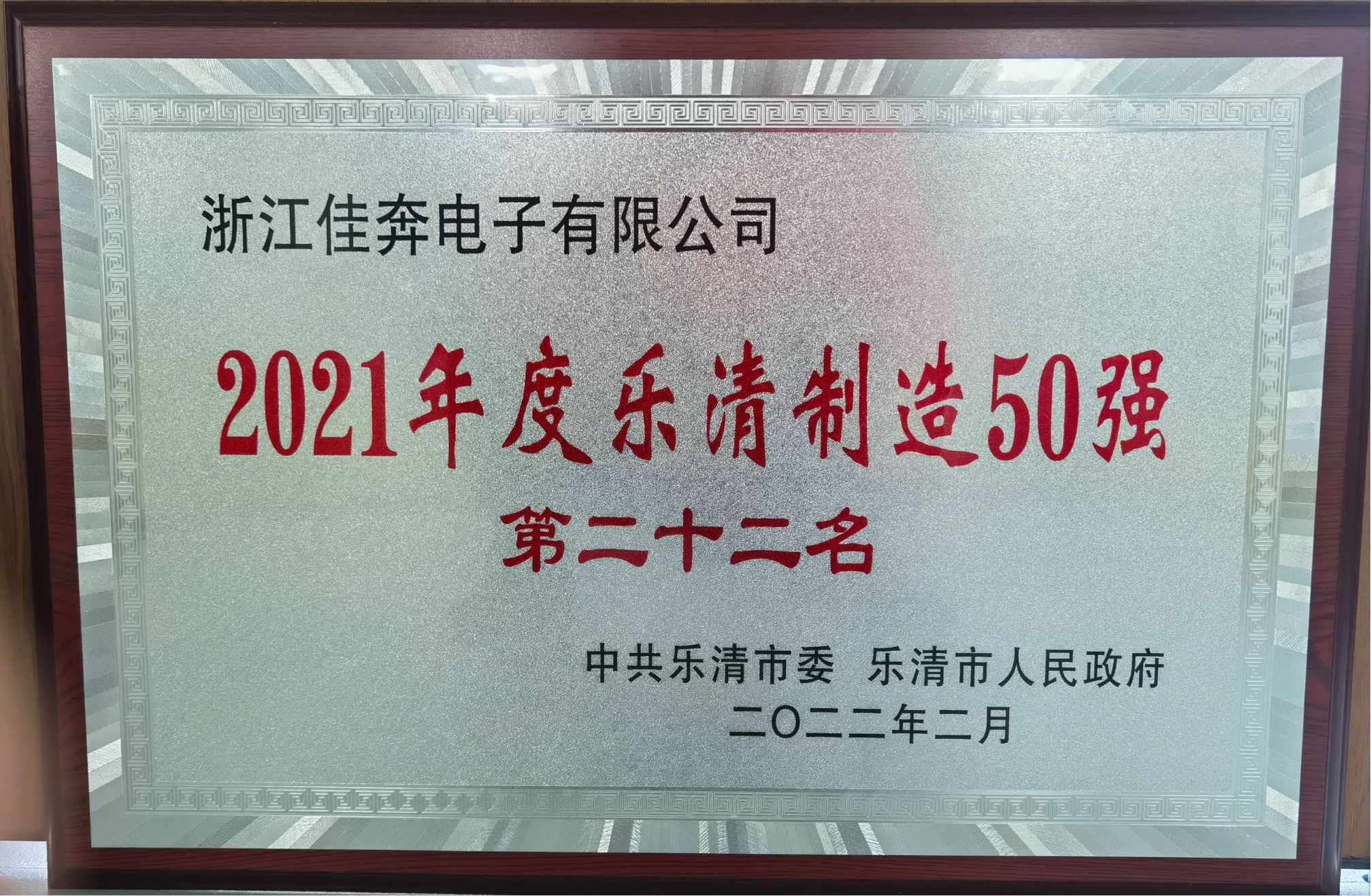 在2022年度召開的樂清市經濟高質量發展大會上,公司獲得“2020年樂清制造50強第22名”的榮譽獎牌,我們將再接再厲,繼續努力!
