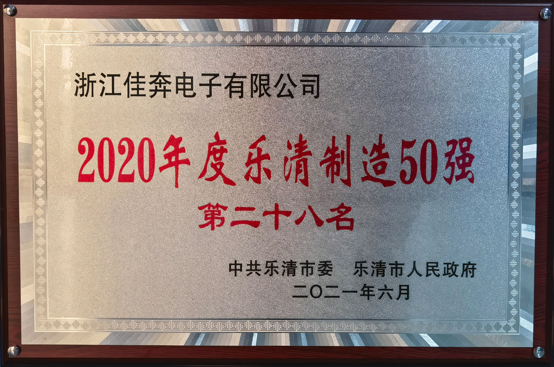 在2021年度召開的樂清市制造業高質量發展大會上,公司獲得“2020年樂清制造50強第28名”榮譽獎牌,我們將再接再厲,繼續努力!