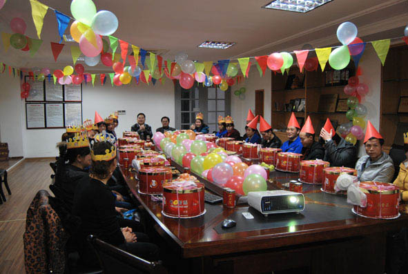 佳奔在公司為企業員工舉辦生日聚會,每人都領得一個大蛋糕,現場奶味十足