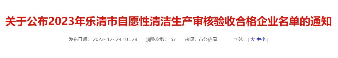 各有關企業: 根據溫州市經信局《關于組織開展2023年自愿性清潔生產審核企業和節水型企業推薦工作的通知》文件要求及2023年樂清市自愿性清潔生產計劃安排,樂清市經信局組織開展了2023年清潔生產項目創建工作,其中火炬電氣集團有限公司等34家企業通過審核驗收,取得了清潔生產階段性成果。 希望通過清潔生產審核驗收的企業再接再厲,持續開展清潔生產,為我市全面推行清潔生產綠色制造,完成節能減排任務,發展循環經濟,推動生態文明建設做出表率。 附件:2023年樂清市自愿性清潔生產審核驗收合格企業名單